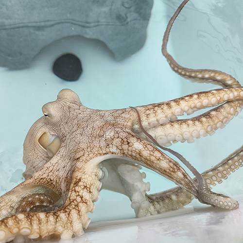 Octopuses are well-known for their intelligence, curiosity, and creativity—they are famous for escaping their cages in aquariums, poaching fish from nearby exhibits, and playfully sabotaging exhibit fixtures. A recent review of over 300 scientific studies of octopus and other cephalopods also found strong evidence that octopuses are sentient, meaning they are capable of experiencing feelings such as pain, pleasure, distress, and excitement.